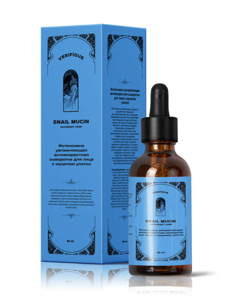 Интенсивно увлажняющая антивозрастная сыворотка для лица с муцином улитки Verifique, 560 р.