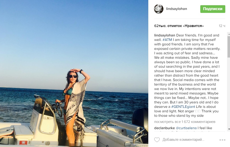 Вчера Линдси выложила снимок на яхте в Instagram и извинилась за свое поведение. Но Егор Тарабасов все равно съехал от скандальной актрисы. Как же он отреагирует на новость о ее беременности? Отец девушки свое заявление уже сделал: «У меня нет оснований ей не верить!»