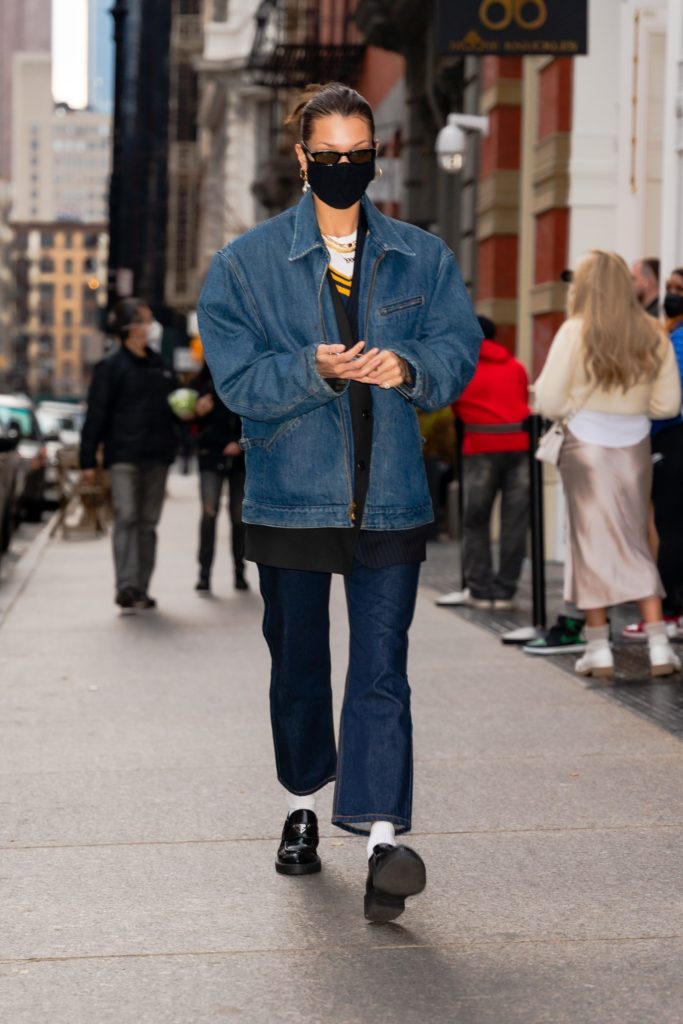 Прошлой осенью папарацци заметили Беллу Хадид в лоферах с белыми носками. Пока кто-то спорил, модно это или нет, другие быстро вдохновились новым выходом модели и купили пару трендовой обуви. А теперь еще несколько модных советов от Хадид: в этом сезоне носи лоферы с брючным костюмом, джинсами клеш и оверсайз-бомбером.