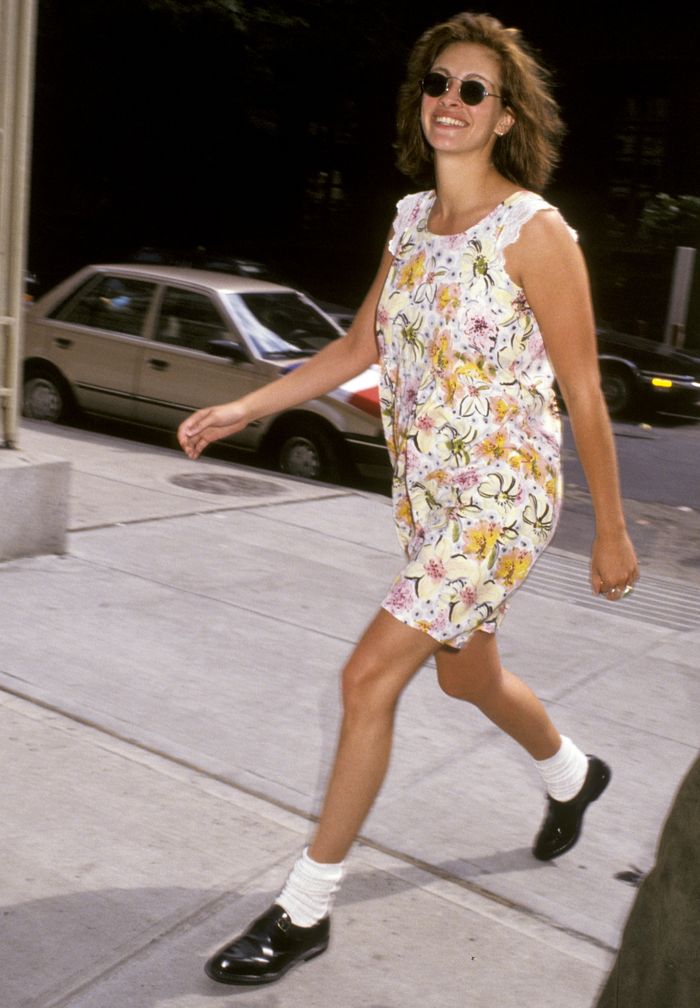Джулия Робертс была одной из тех звезд, кто вернул эту обувь в моду 90-х. Тогда она появилась на улицах Нью-Йорка в платье с цветочным принтом и дополнила его дуэтом лоферов и белых носков. А Кэмерон Диас носила их с яркой мини-юбкой.