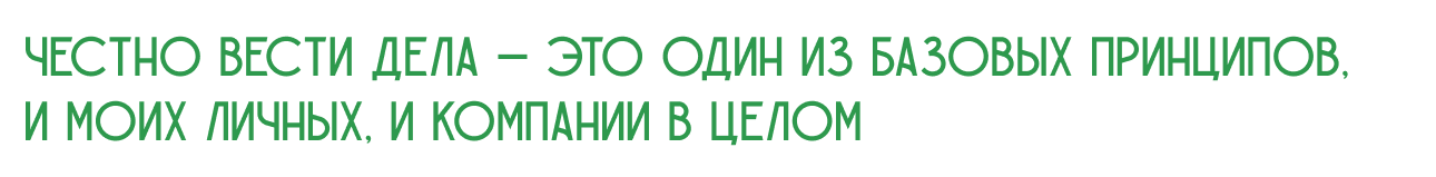 Честный, открытый, свежий. Для меня честно вести дела – это один из базовых принципов, и моих личных, и компании в целом.