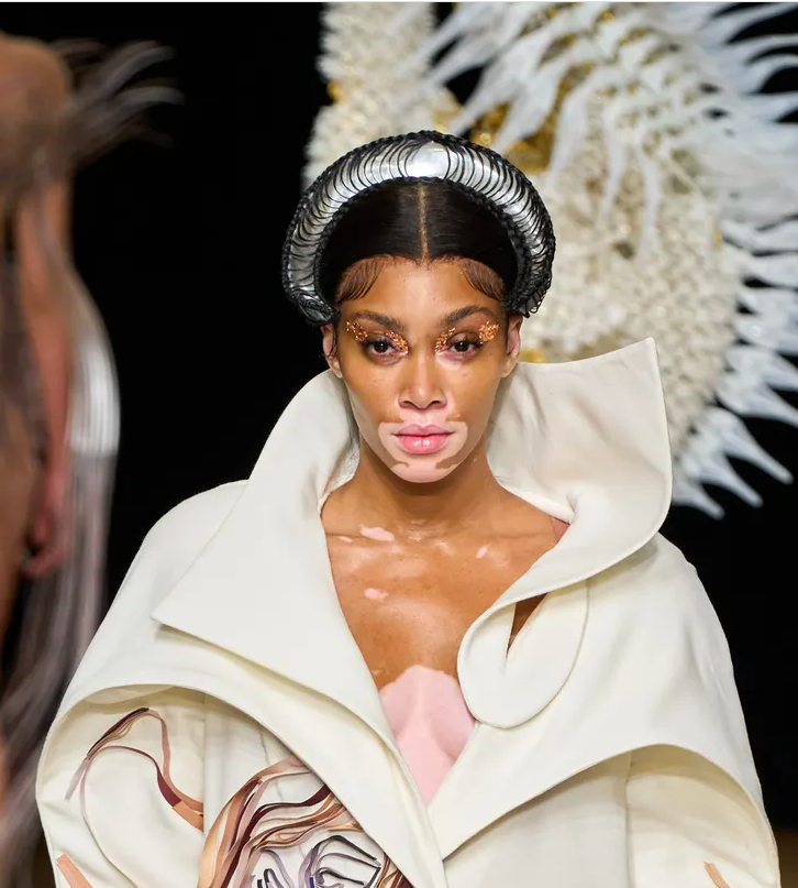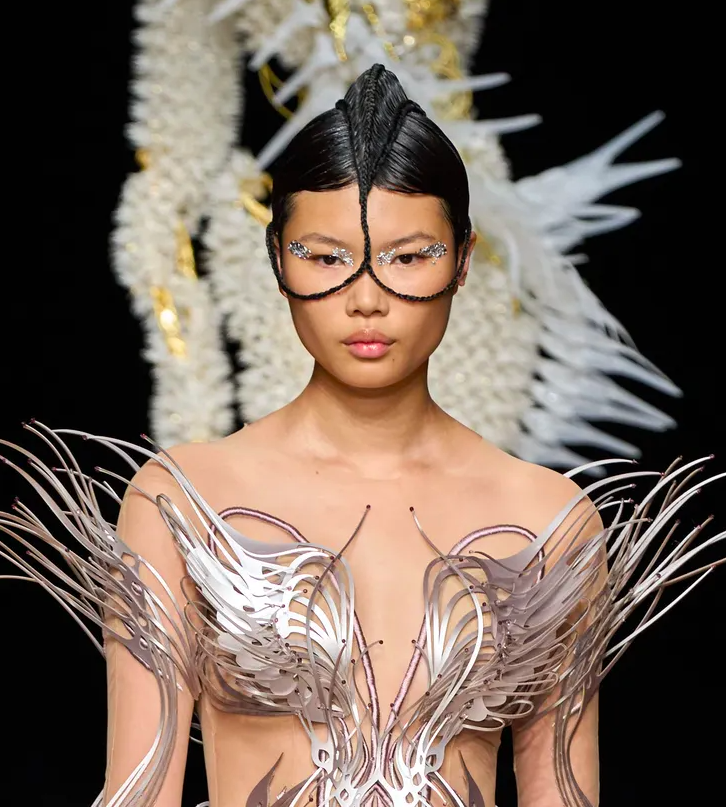 Первые в нашем рейтинге — визажисты и мастера по волосам, которые работали над моделями показа Iris van Herpen. Тандем причесок и макияжа идеален, а их сочетание с одеждой — еще лучше. На глазах моделей был глиттер (и нет, он нам еще не надоел), оттенки которого мэтчились с нарядами. В общем, работа, потрясающая воображение.