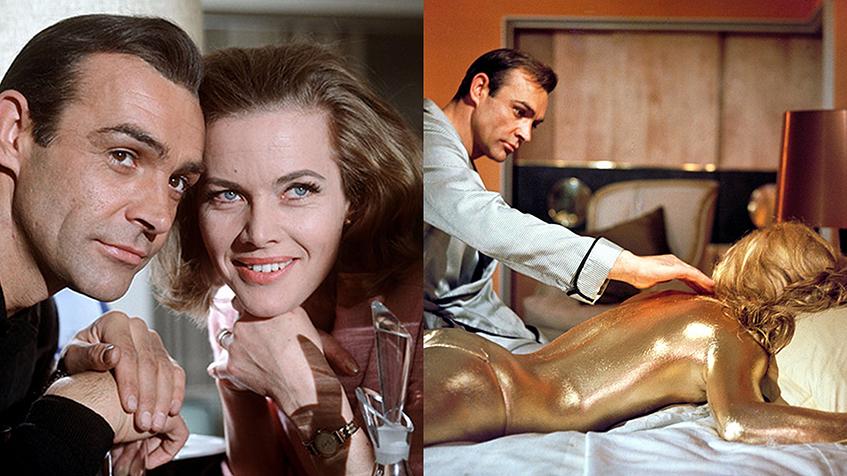 В 1964 году у Бонда появилось сразу две девушки. В фильме «Голдфингер» обе героини сначала работали на центрального злодея картины, но, конечно, не устояли перед обаянием Бонда-Коннери. Пусси Галор сыграла актриса Онор Блэкман, которой на тот момент было 39 лет и которая была старше Коннери. А роль покрытой золотой краской Джил Мастерсон исполнила юная Ширли Итон. По сюжету она умерла от интоксикации краской.