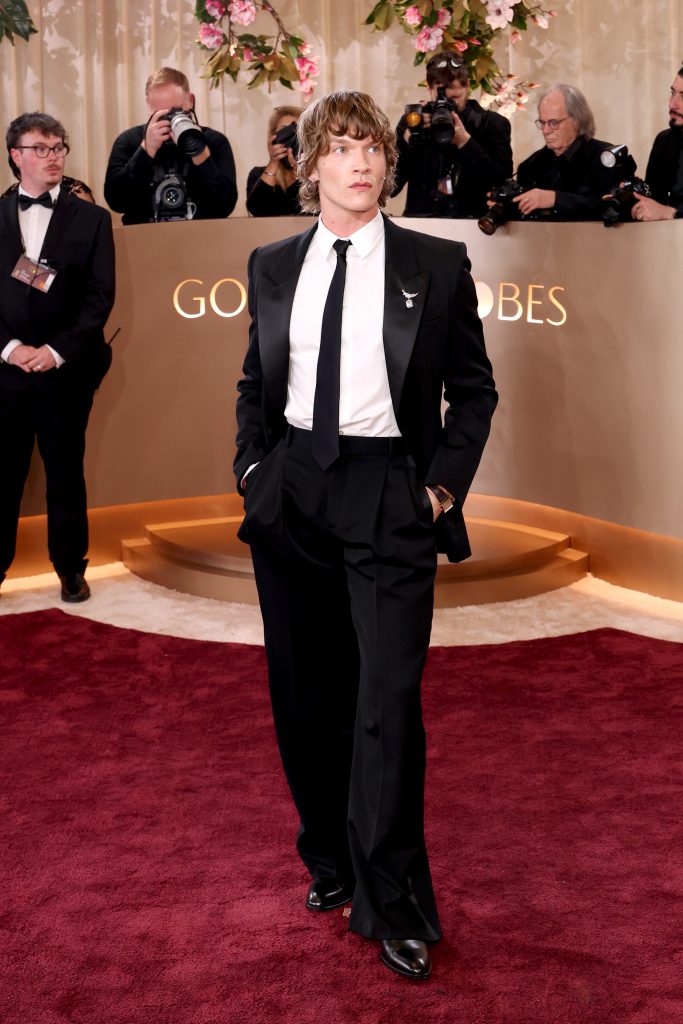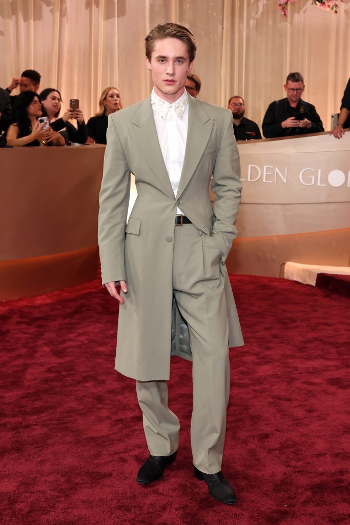 Не проспал премию и Снуп Дог, решивший подчеркнуть классический черный смокинг акцентной красной полосой и трендовыми очками-авиаторами. Среди гостей также заметили одного из самых неожиданных персонажей вечера – тиктокера Олли Мула, которого мы изредка привыкли видеть на фронтроу модных показов, но на этот раз он добрался аж до «Золотого глобуса». Для дорожки двойник Райана Гослинга выбрал светло-оливковый костюм, дополнив его классической рубашкой с воротником, расшитым натуральными камнями.