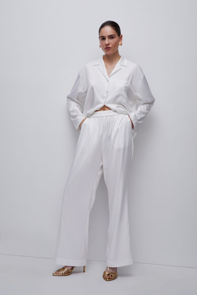 Если ты не хочешь наряжаться в новогоднюю ночь и планируешь встретить 2024-й в домашней обстановке, делай ставку на красивую пижаму. Шелковый или атласный комплект можно круто дополнить аксессуарами и украшениями (например, трендовой жемчужной нитью). А при желании пижаму можно застилизовать с мюлями или босоножками, которые выигрышно завершат аутфит. Собрали десять модных комплектов от российских брендов.