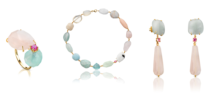 А как прекрасно золотое ожерелье Dreams, в котором играет всё весеннее буйство красок! Кажется, оно собрало все драгоценности из недр земли и океана: жемчуг, кварц, перламутр, редкий драгоценный камень шпинель и другие камни всевозможных цветов и оттенков.