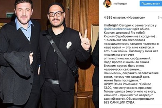 «Друзья..!.. Позвольте с вами поделиться.. Удивительное время.. Сегодня 23 июня релиз моего мини-альбома, а 26 июня в суде, будет вынесен приговор.. Это судебное безумие #театральноедело коснулось моего мастера, друга, очень дорогого мне человека Кирилла Семеновича Серебренникова.. Благодаря которому я познакомился с Москвой, с Москвой молодой, красивой, образованной.. Благодаря которому, я стал частью 7 студии (одногруппники мои #7студия, на меня сейчас как никогда напала мысль, как сильно я вас люблю и какие же мы непоколебимо крутые) и познакомился с удивительными людьми.. Благодаря которому я почувствовал искусство в себе, это был не Станиславский, не Чехов, не Вахтангов, не Мейерхольд, это был Кирилл Серебренников.. Благодаря которому я по сей день нахожу общий язык с самим собой, благодаря которому я ценю такие божественные дары, как дружба, любовь и семья.. Посмотрев свой первый в жизни спектакль, осознанный мною спектакль «Господа Головлевы» (спектакль Кирилла Серебренникова), я понял в какие мудрые, космически-талантливые руки я попал и душа моя улыбнулась и с этой улыбкой на душе я хожу до сих пор..