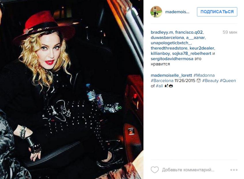 26 ноября певица решила отпраздновать День благодарения в одном из заведений Барселоны, куда она приехала в рамках ее мирового турне Rebel Heart. Мадонна вышла из машины в черном пиджаке, одетом поверх рубашки с узором, красной шляпе и с серебряными зубами, что, конечно, сильно удивило окружающих.