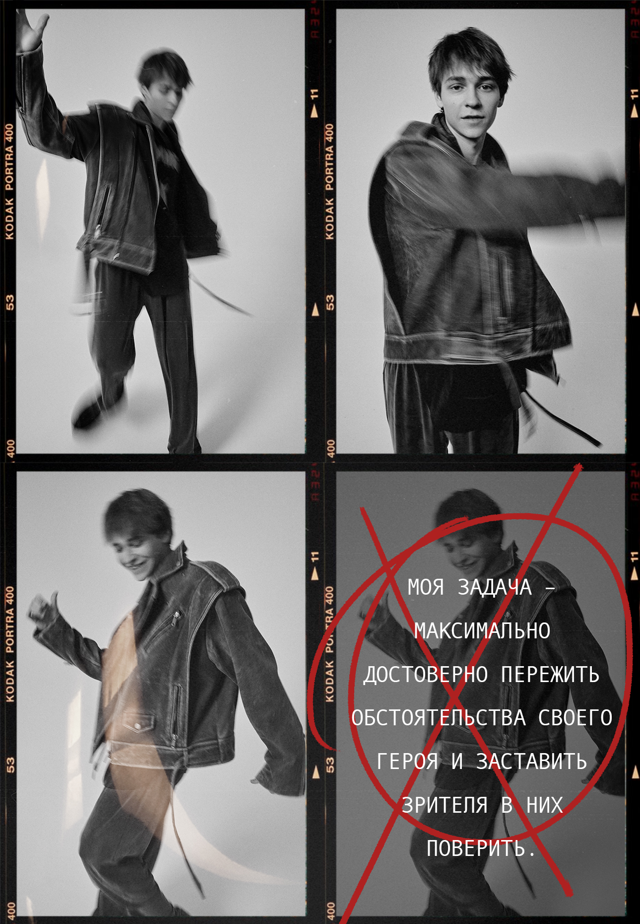 «Сейчас я учусь быть собой и оставаться уверенным в себе. Но конкретно для меня самое сложное в актерской профессии – мелкие детали проработки героев. Мне нужна дистанция, чтобы понять, за что цепляться, а что сразу отсеивать. Есть актеры, которые чувствуют и схватывают это сразу, еще на пробах, но это опыт и мастерство, которые надо нарабатывать».