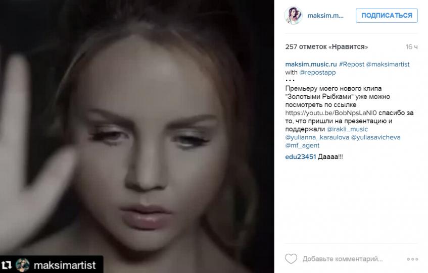 В конце минувшего мая певица МакSим (34) презентовала новый сингл «Золотыми рыбками», который очень полюбился поклонникам звезды. А 10 сентября певица опубликовала видео на песню.