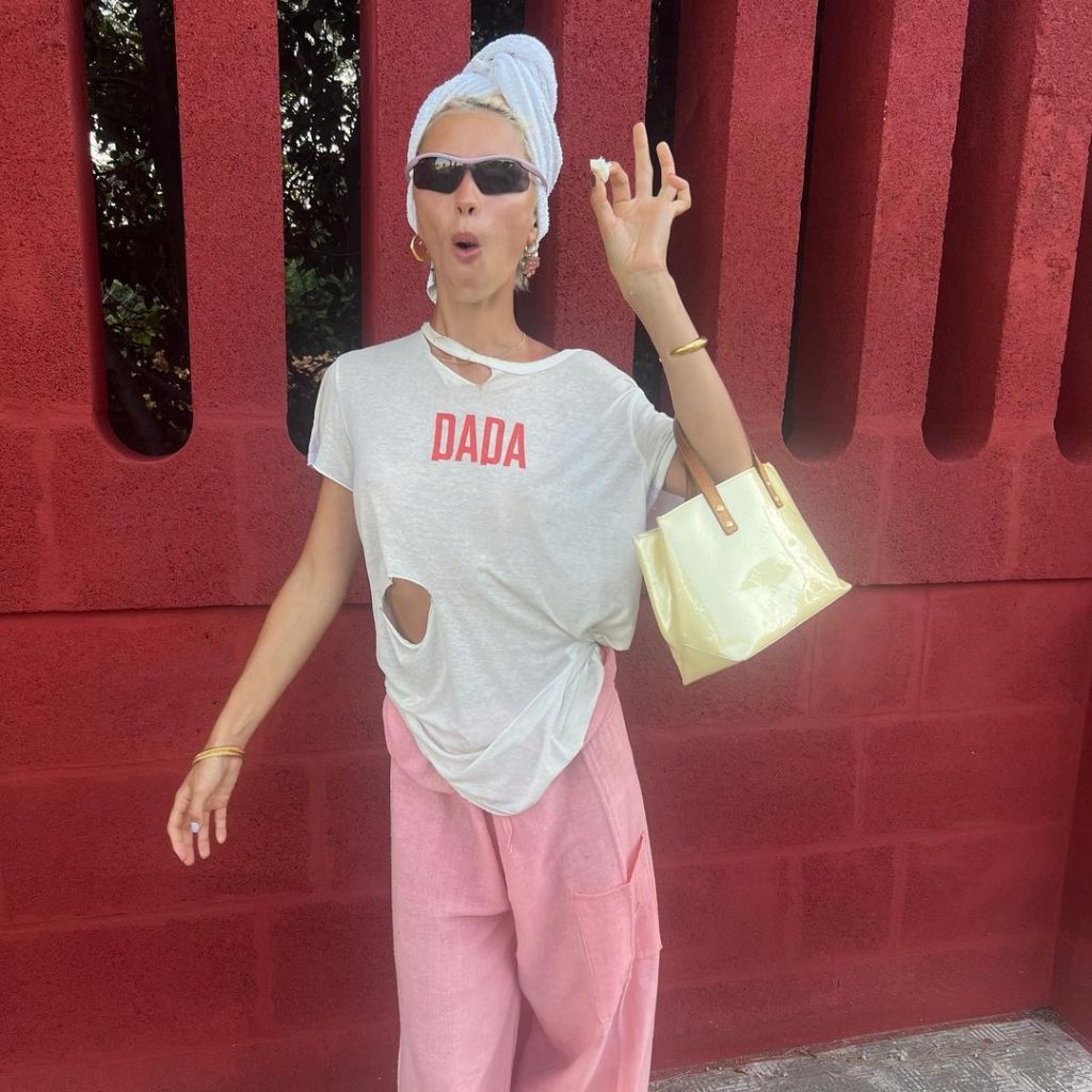 Два дня назад модель выложила подборку фотографий со своего отдыха. Помимо селфи с маникюром, Айрис продемонстрировала, что можно носить на отдыхе вместо панамы или кепки — и это полотенце. А после вспомнила нулевые, дополнив свою короткую стрижку заколками в виде бананов.