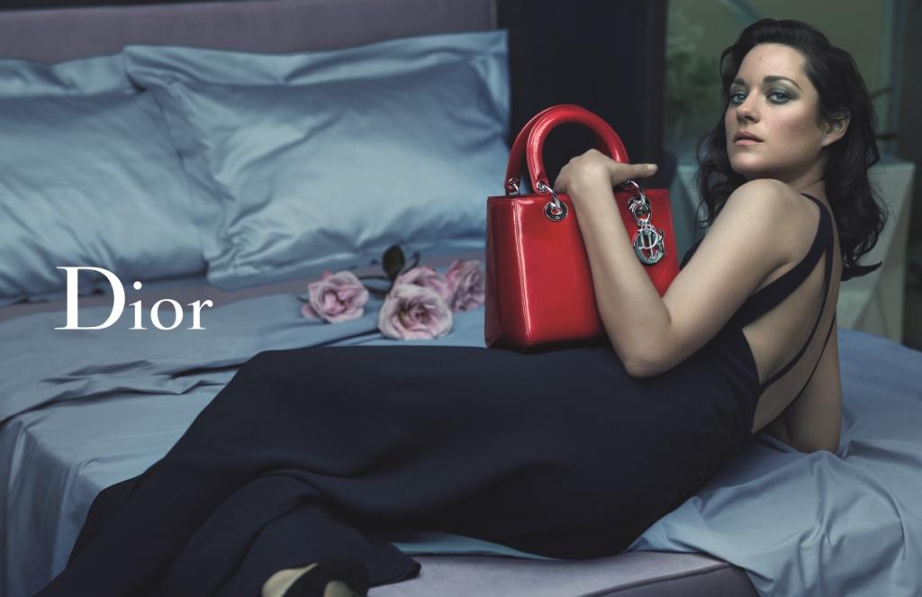 На этих снимках в руках у Марион, конечно, сумочка Lady Dior. В этой фотосессии она представлена в рубиновом и золотистом цветах.