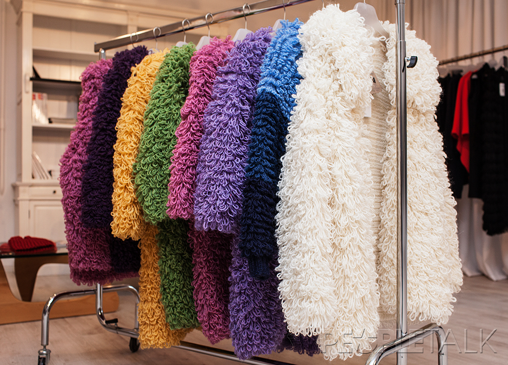 • Визитной карточкой бренда являются шерстяные пальто-шубки ярких насыщенных цветов и шапочки. Все изделия марки связаны вручную профессиональными вязальщицами в Сербии, в горах Златибора, недалеко от деревни Эмира Кустурицы. Этот район на протяжении многих лет славится своими вязальщицами: их изделия носили королевы Исландии и Великобритании. Все пальто и куртки связаны из экологически чистой исландской шерсти Lopi (исландская порода овец), окрашенной безопасными красителями без отбеливания.