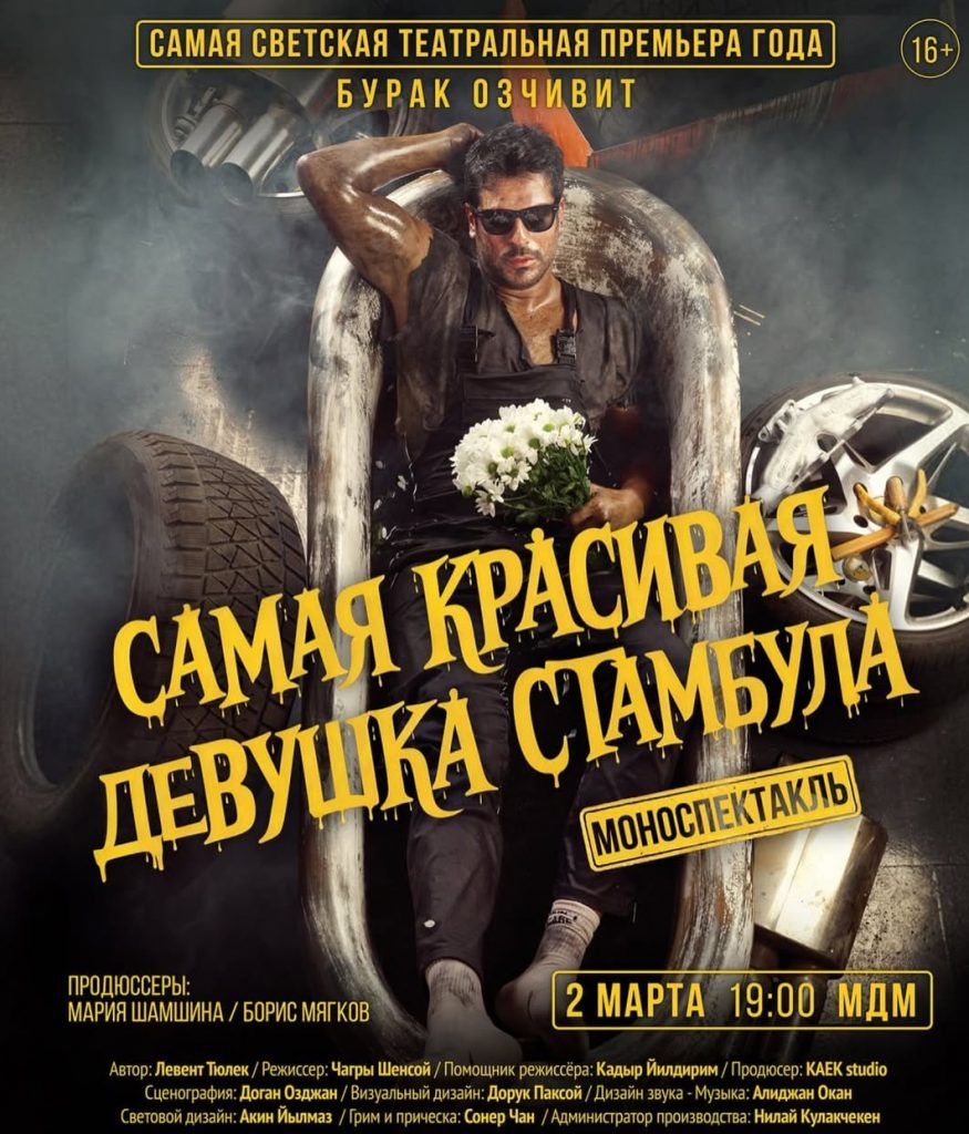 Мы нашли удачный подарок на 8 марта для поклонников турецких сериалов, а также идею для интересного досуга. Речь о моноспектакле «Самая красивая девушка Стамбула» с Бураком Озчивитом, звездой «Черной любви» и «Великолепного века». По сюжету автомеханик Октай находит отражение собственной жизни в сломанной машине и в женщине, которую называет самой красивой девушкой Стамбула. Премьера пройдет 2 марта в МДМ.