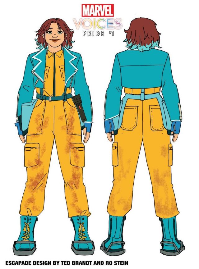 Вообще Эскапада воровка и мошенница, но делает она это во благо других. Героиня предпочитает пользоваться всевозможными гаджетами вместо своих суперсил, но почему — будет раскрыто только после выпуска Marvel’s Voices: Pride #1.