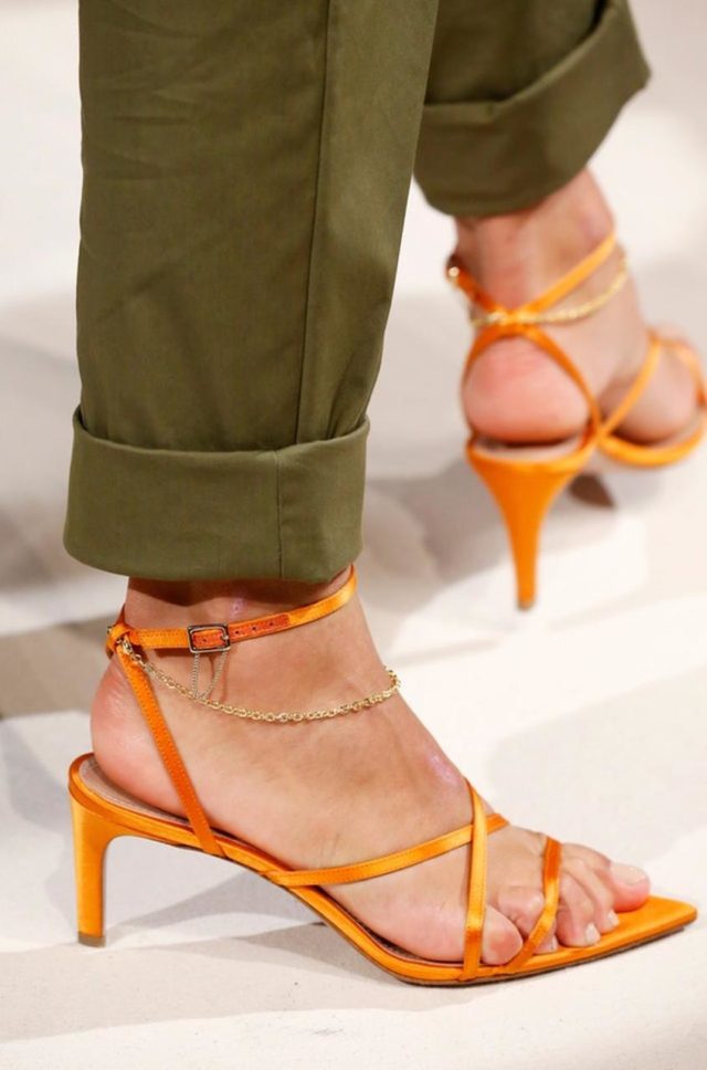 Браслеты — ещё одно модное решение этого сезона. Правда, носить их нужно на ноге. Такие минималистичные модели отлично смотрятся и с мюлями, и с босоножками, и лодочками.
