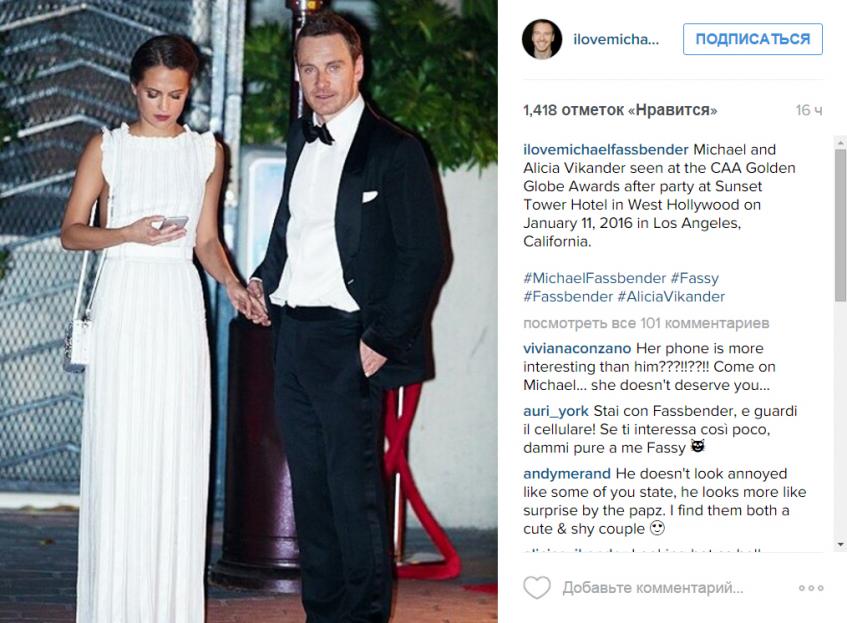 Уже почти год ходят разговоры о том, что Майкл Фассбендер (38) и Алисия Викандер (27) встречаются. Несмотря на то, что актеры часто появляются вместе, они никак не проявляют чувств друг к другу, что делает их самой застенчивой парой Голливуда. Но на церемонии вручения премии «Золотой глобус – 2016», которая состоялась 10 января в Лос-Анджелесе, все изменилось.