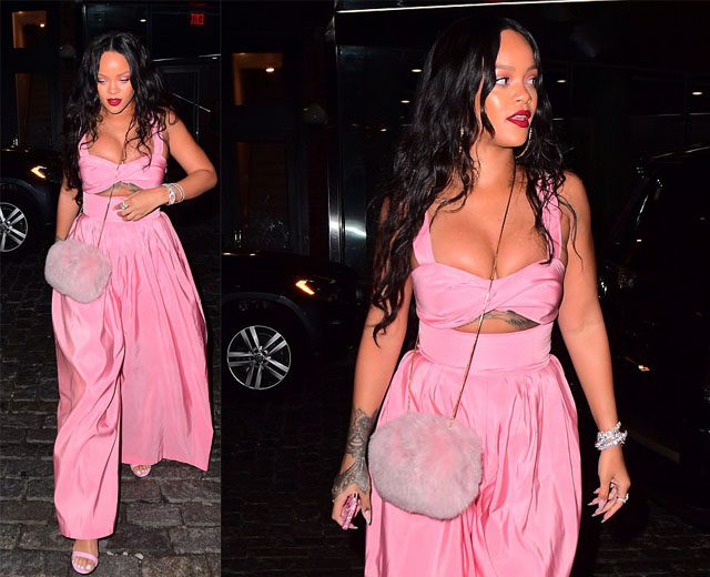 Но теперь, похоже, Рианна исправляется. Вчера певицу видели по пути в один из ресторанов Нью-Йорка. Она были одета в розовый топ, свободные брюки и босоножки. Дополнением к образу стала сумочка в тон, несколько серебрянных браслетом и кольцо с бриллиантом. Розового, конечно, очень много, но выглядит Ри стильно.