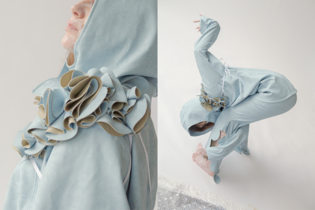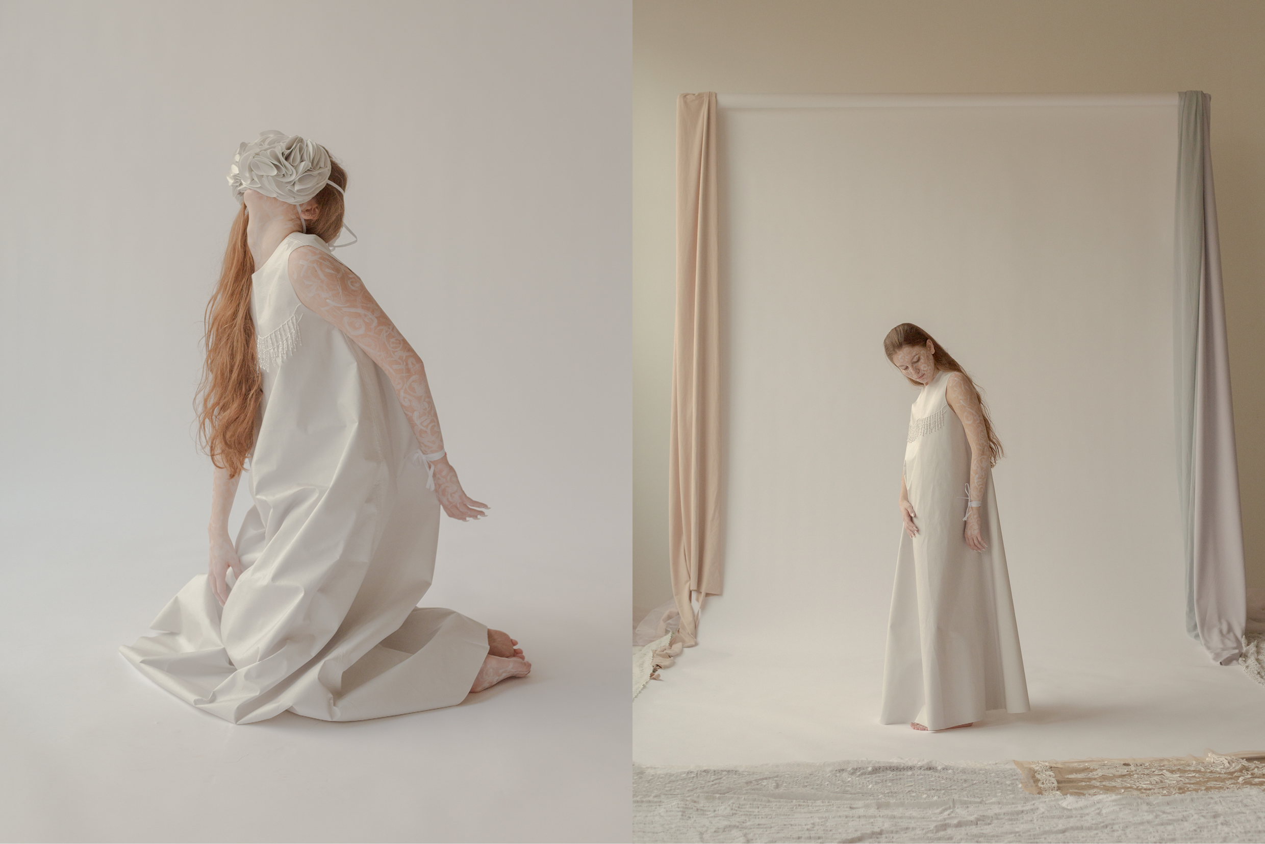 В новой линии можно заметить элементы традиционной якутской одежды. Бренд о5о впервые использует апсайклинг: коллекция выполнена не только из новых, но и из винтажных тканей (тут и обрезки скатертей, ковров, тюля, и остатки материалов из прошлых коллекций бренда).