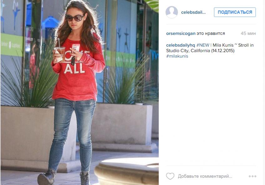 В очередной раз папарацци застали Милу в Студио-Сити (штат Калифорния) 14 декабря. Звезда появилась в свободной красной кофте и обтягивающих джинсах, которые только подчеркивали стройные ноги актрисы.