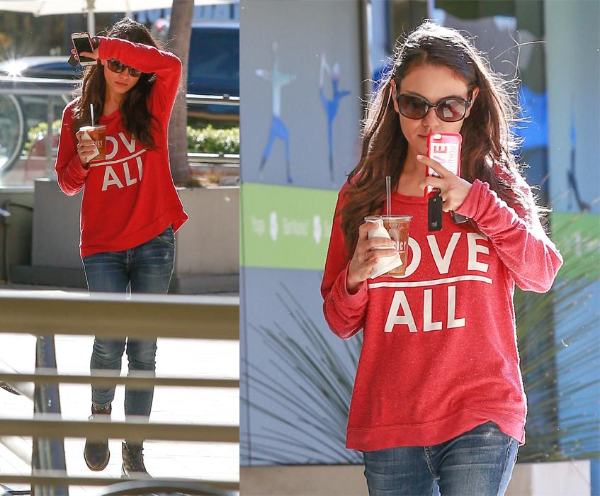 В очередной раз папарацци застали Милу в Студио-Сити (штат Калифорния) 14 декабря. Звезда появилась в свободной красной кофте и обтягивающих джинсах, которые только подчеркивали стройные ноги актрисы.