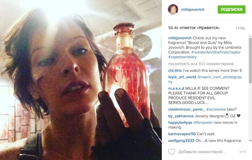 В 2017 году на экранах появится шестая часть серии «Обитель зла», главную роль в которой по традиции исполнит Милла Йовович (39). В последнее время девушка все чаще радует поклонников снимками со съемочной площадки, однако последняя фотография в Instagram актрисы буквально шокировала подписчиков.