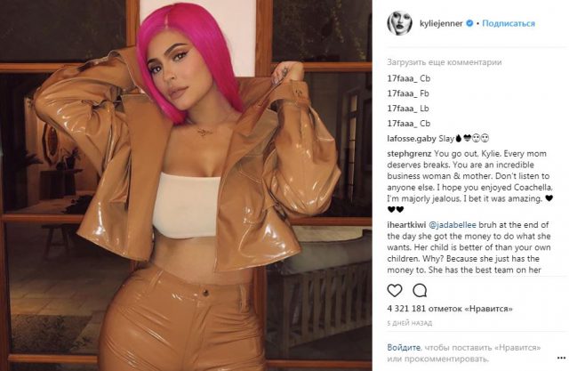 Кайли, похоже, даже не собирается отвечать хейтерам, которые накинулись на нее за то, что Дженнер на несколько дней оставила дочку и уехала на фестиваль «Коачелла».