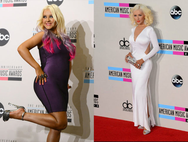 В 2012-м после развода с Джорданом Брэтманом (42) звезда запустила себя и за полгода набрала почти 30 кг. Певица признавалась, что ей комфортно с таким весом и своей внешностью она довольна: «Я уверена в себе, в своем теле и в том, как я выгляжу!» Однако позже Агилера взяла себя в руки перед помолвкой с Мэтью Раттлером и за 10 месяцев похудела на 37 кг. Как сообщают инсайдеры, диетологи составляли для звезды меню, по которому ей готовили и доставляли пищу. Кроме того, Агилера ежедневно занималась йогой. Правда, в 2017-м она снова начала набирать вес, и, судя по последним снимкам, на весах в плюсе явно больше 10 кг.