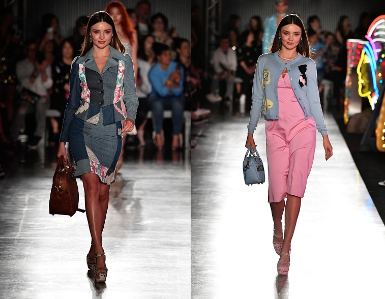 Только вот медовый месяц длился недолго! Уже через неделю топ-модель приняла участие в показе круизной коллекции Moschino в Голливуде. Жена самого молодого миллиардера в мире дефилировала в розовом платье и серо-голубом кардигане с яркой вышивкой, а затем в джинсовой юбке и жакете с цветочными вставками.