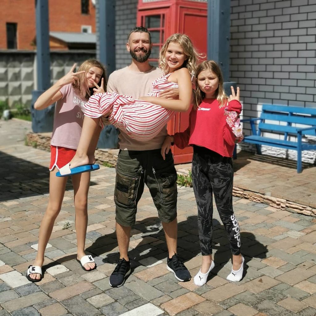 Владимир Кристовский с дочерьми Стасей, Мией (на руках у папы) и Умой. Фото: @vova_kristovskiy
