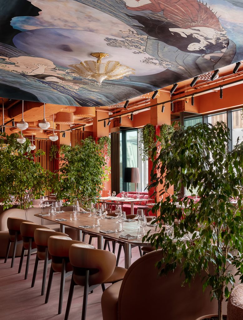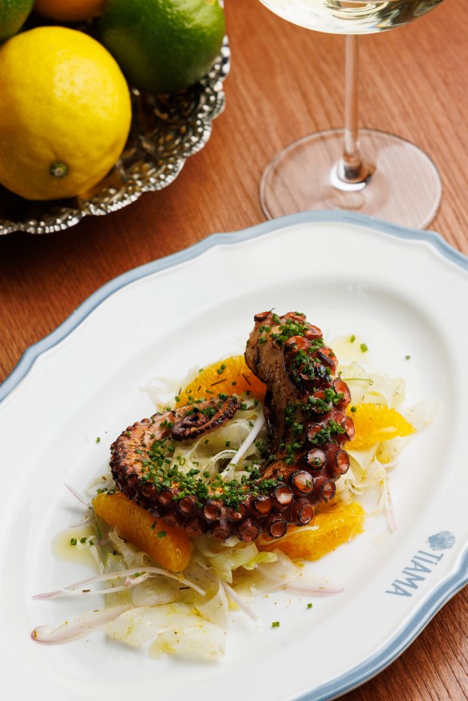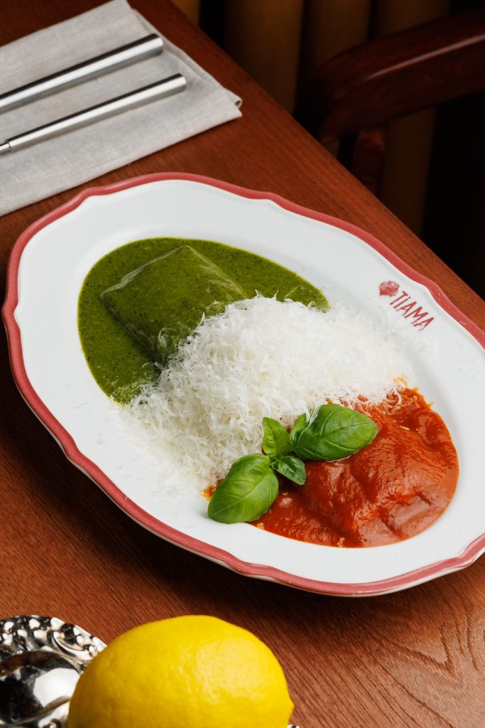 Ресторан TiAMA – то самое место, где гармонично переплетаются Италия и Азия. К примеру, сочная зелень (отсылающая к солнечной Италии) соседствует с панно с японскими мотивами, а лимончелло делают на саке. Расположен ресторан TiAMA в объекте культурного наследия, на первом этаже здания с вековой историей «Складъ холодильникъ Унiонъ». Внутри все тоже монументально: высокие, «лофтовые» потолки, огромные витражные окна, большой квадрат открытой кухни с рассадкой за стойкой, объединяющий два зала – залитый солнцем «итальянский» и более камерный «японский».