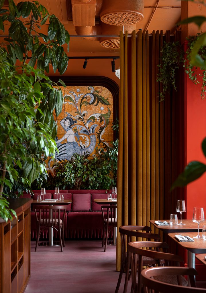 А вот интерьер Rakushka заслуживает отдельного внимания. Это своеобразный микс портового декаданса и уличного искусства: граффити на кирпичной кладке, морская тематика без прямолинейных маяков и якорей, а еще стеклянные люстры, которые висят прямо под перевернутой лодкой с надписью «Маруся». Мебель тоже собрана эклектично: строгие деревянные столы, винтажные стулья и диваны, обитые мягким бархатом, живут на фоне стен, где штукатурка нарочно облупилась, обнажив кирпич. Все это вместе создает ощущение живого, сложносоставного интерьера. В общем без контента для соцсетей не уйдешь, это мы тебе гарантируем.