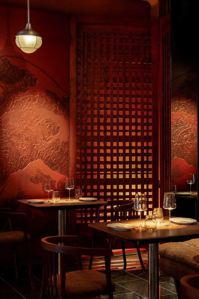 Интерьер ресторана подчеркивает его философию: строгий, лаконичный, но не лишенный уюта. Темное дерево, глубокие графитовые и серые оттенки, открытые коммуникации и минималистичные формы создают пространство, где ничто не отвлекает от вкуса. Здесь царит спокойная, почти камерная атмосфера, располагающая к неспешным ужинам и долгим разговорам. Считаем, все продумано просто идеально. Пространство, кстати, зонировано так, чтобы каждый гость мог выбрать для себя комфортное место – у открытой кухни, в глубине зала или в уединенной нише.