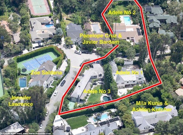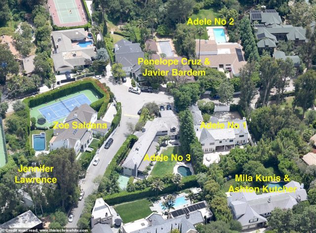 Соседями известной британской певицы являются Пенелопа Крус и Хавьер Бардем, Мила Кунис и Эштон Катчер, а также Дженнифер Лоуренс.
