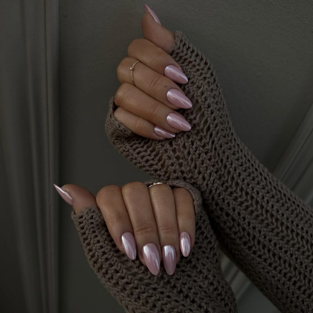 Бьютиголики не хотят отпустить эффект «кошачьего глаза», поэтому немного преобразили его к весне. В 2026 мы часто будем видеть хромированный маникюр. Это покрытие, отражающее свет. Однозначно один из самых классных вариантов для тех, кто предпочитает необычые нейл-арты.