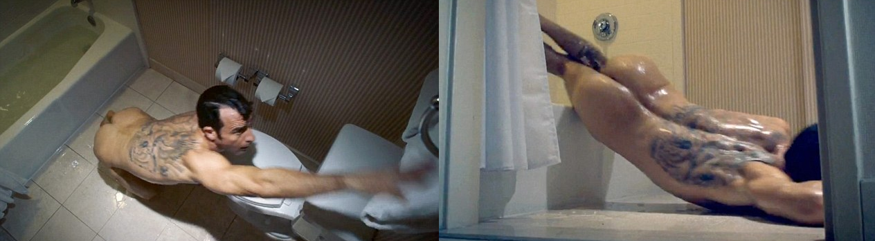 Джастин предстает там не совсем в выгодном свете. Его герой неуклюже пытается выбраться из ванной и дотянуться до полотенца. Актер отказался от дублера, поэтому его пятую точку смог увидеть весь мир!