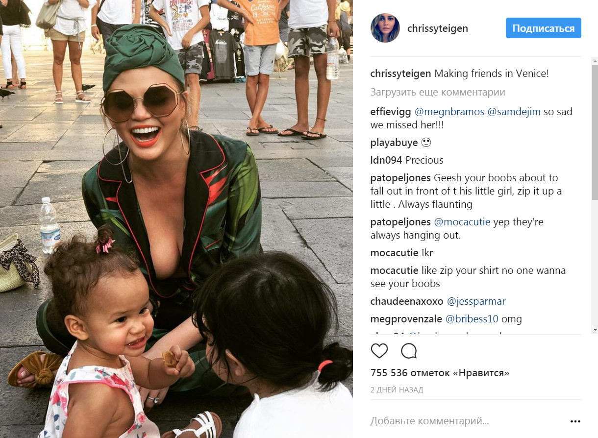Крисси Тейген (31) – модель, телеведущая, жена музыканта Джона Ледженда (38), мама дочки Луны и женщина, которая добилась блокировки от президента США Дональда Трампа (71), написав всего пять слов «Лол. Ты никому не нравишься» (напомним, до этого она критиковала его в Twitter целых 9 лет, но эти пять слов окончательно вывели Трампа из себя). Подписчики также ценят ее за честность и откровенность – она не стесняется показывать прыщики, растяжки и с удовольствием обсуждает проблемы материнства.