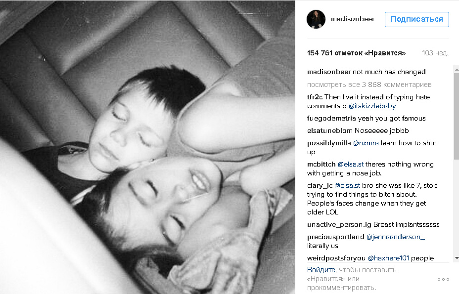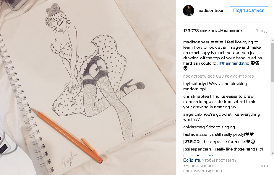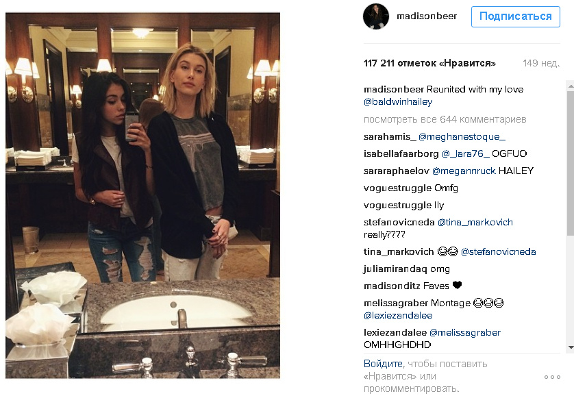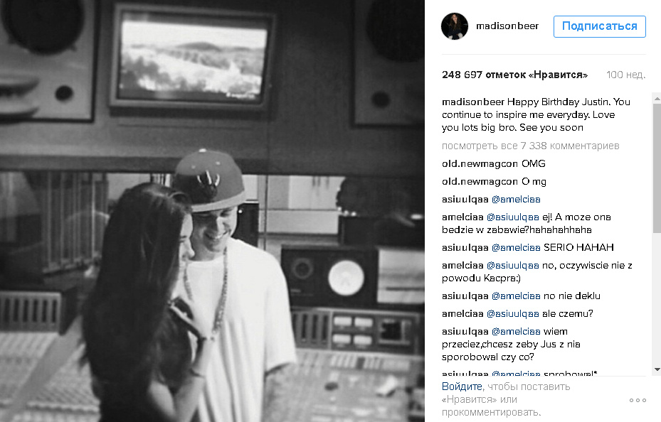 Кое-что о Мэдисон Бир мы тебе уже рассказывали. Эту девушку заметил Джастин Бибер (22), когда она выложила видео, на котором поет песню Этты Джеймс At last. Тогда Мэдисон было всего 13 лет, а через год у нее вышел дебютный клип. Сейчас поклонники Бибера всерьез подозревают, что у них с Мэдисон роман. Мы решили узнать об этой девушке побольше, а заодно и подписаться на нее в Instagram – ее профиль правда стоит внимания!