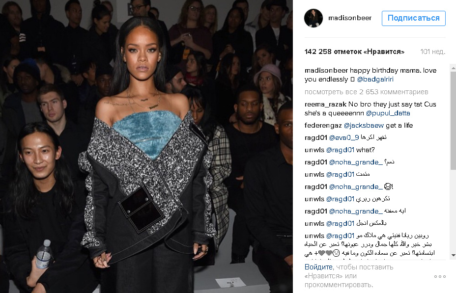 Мэдисон обожает Рианну (28), она часто выкладывает в свой Instagram снимки певицы.