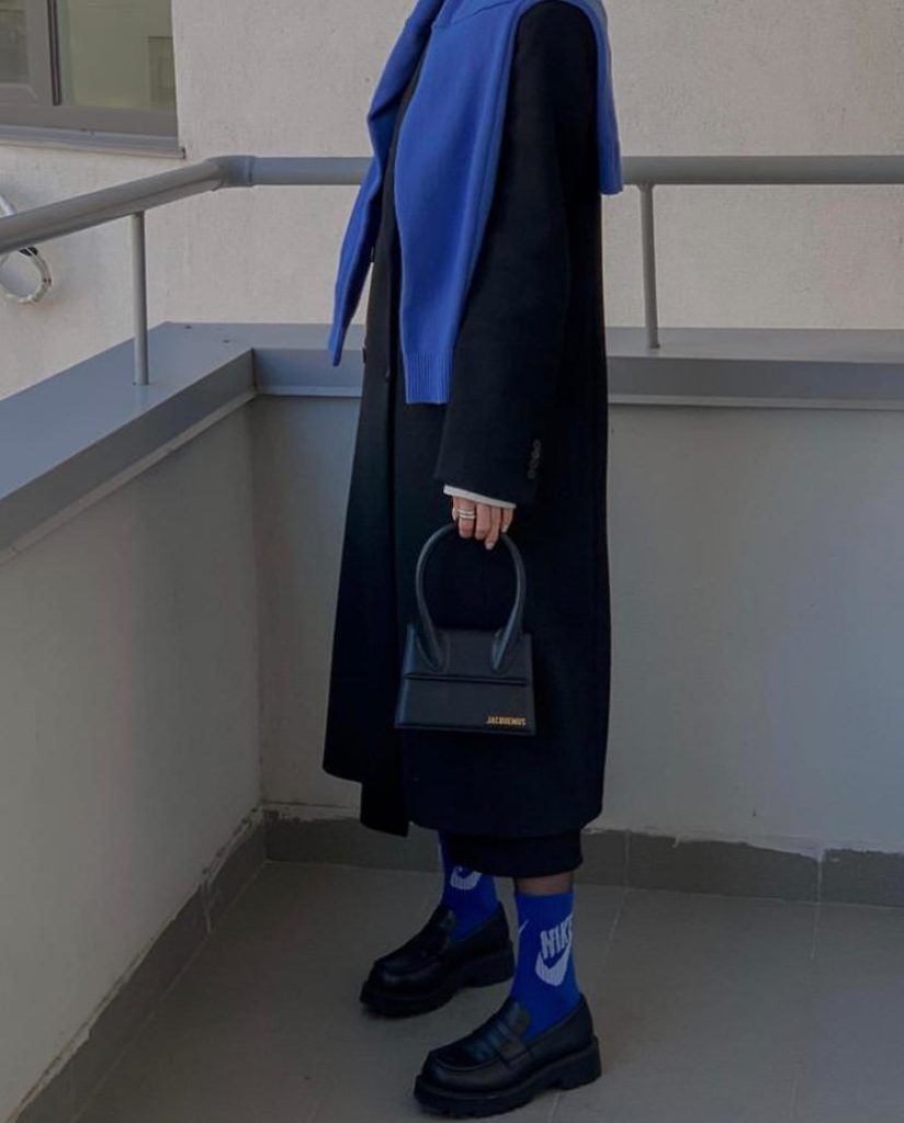 Накинь яркий свитер поверх пальто и надень носки в тон Фото: @alice_fetisova