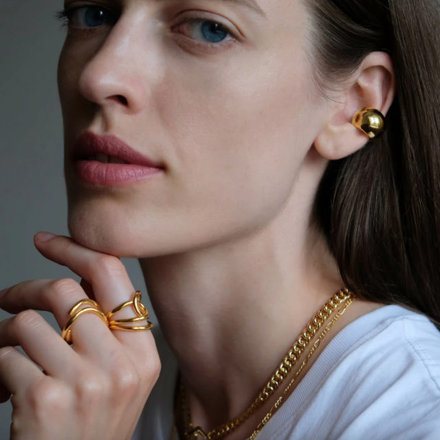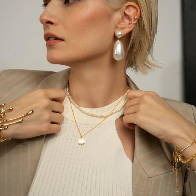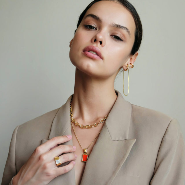 Сейчас идет тренд на объемные цепи, биколорные украшения (когда в одном украшении два цвета, чаще всего серебряный и золотой) и многослойность. Как на ушах, так на пальцах и шее. Этот тренд держится не первый сезон, дизайнеры и дальше будут его его переосмысливать.