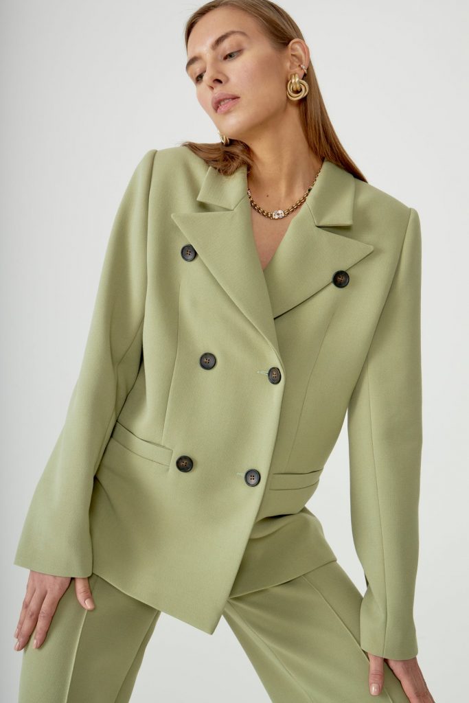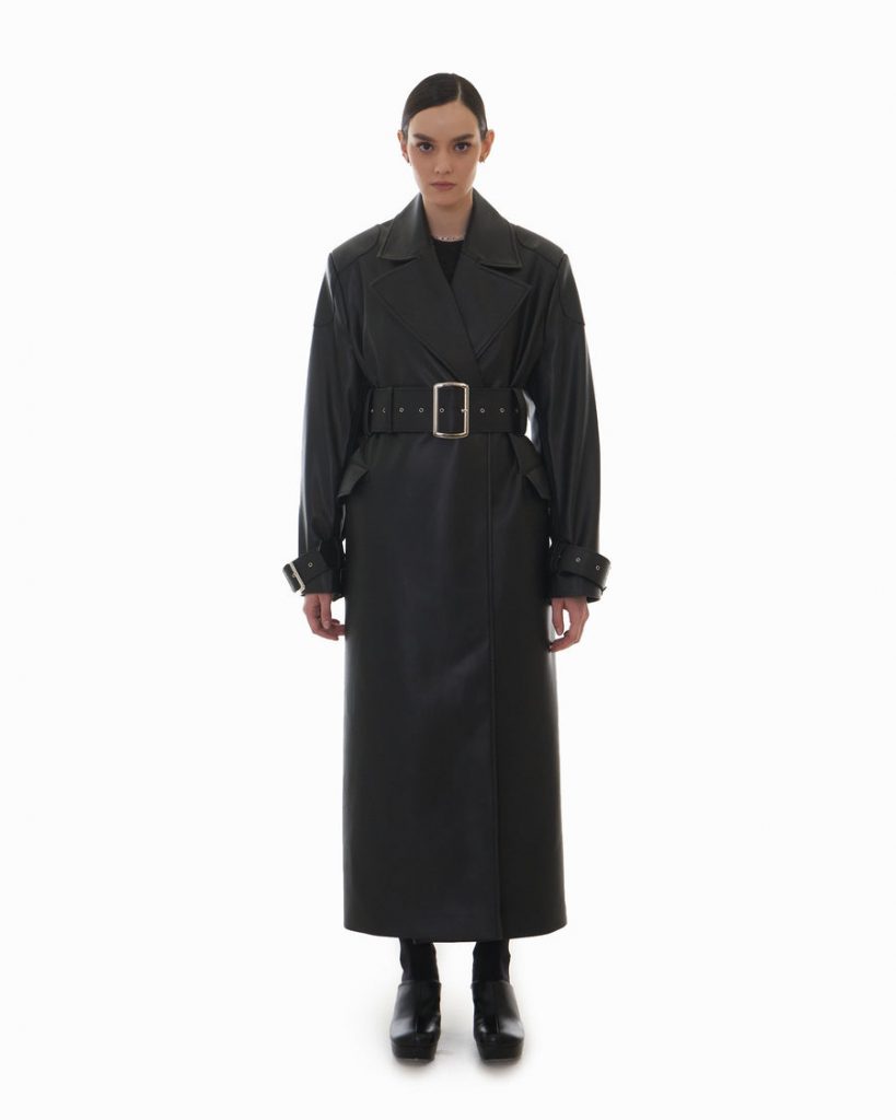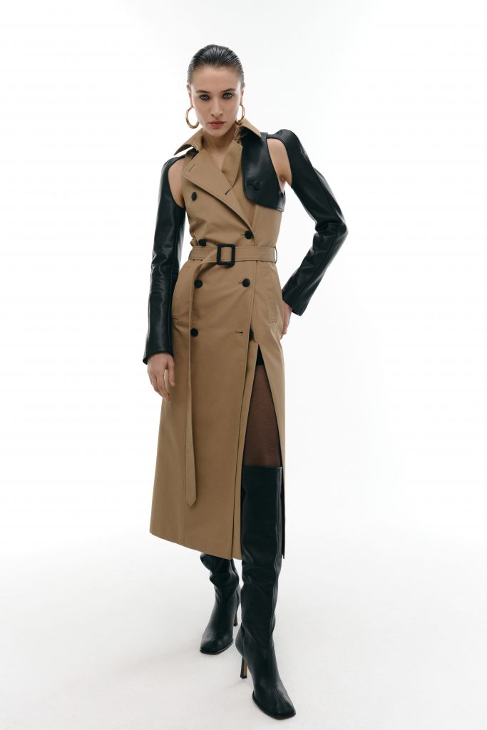 Советуем обратить внимание на пальто с широкими плечами, костюм оливкового цвета и кожаный плащ оверсайз.