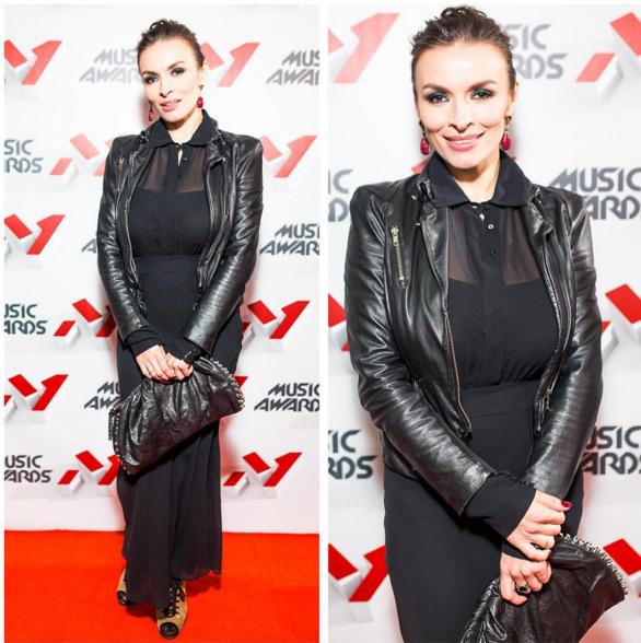 Звезда появилась в черном облегающем платье, подчеркивающим фигуру и небрежно убранными в хвост волосами.