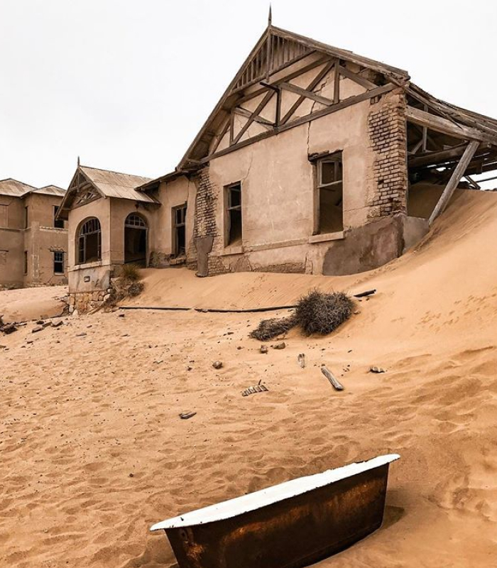 Некогда процветающий город постепенно погружается в пески пустыни Намиб. Он появился благодаря «алмазной лихорадке» в начале XX века. В Колманскоп съезжались люди с разных уголков планеты, чтобы найти драгоценные камни. Казалось, запасы неисчерпаемы, но алмазная добыча завершилась в 1930 году.