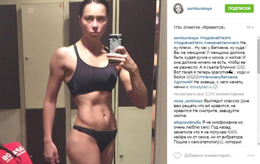 Почти каждая новая фотография, сделанная звездой сериала «Универ» Настасьей Самбурской (28) в спортзале, вызывает бурю эмоций у ее подписчиков. Фанаты актрисы разделились на два лагеря: кто-то поддерживает звезду в ее увлечении спортом, а кто-то считает, что девушка уже переусердствовала с нагрузками. Но Настасья уже научилась управляться с недовольством подписчиков и даже подшучивает над ними.