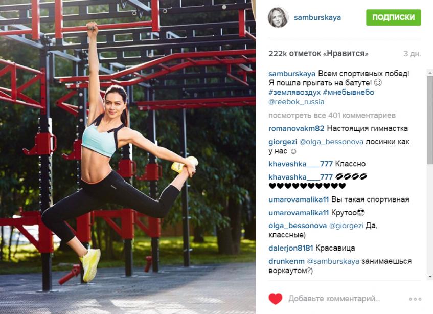 Почти каждая новая фотография, сделанная звездой сериала «Универ» Настасьей Самбурской (28) в спортзале, вызывает бурю эмоций у ее подписчиков. Фанаты актрисы разделились на два лагеря: кто-то поддерживает звезду в ее увлечении спортом, а кто-то считает, что девушка уже переусердствовала с нагрузками. Но Настасья уже научилась управляться с недовольством подписчиков и даже подшучивает над ними.