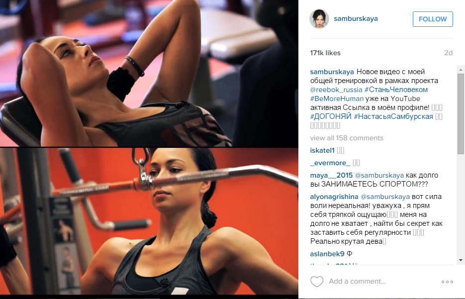 Российская актриса Настасья Самбурская (28) в последнее время то и дело подкидывает СМИ темы для обсуждений. В большинстве случаев такой темой становится ее фигура и занятия спортом, ведь Настасья буквально не покидает спортзал.