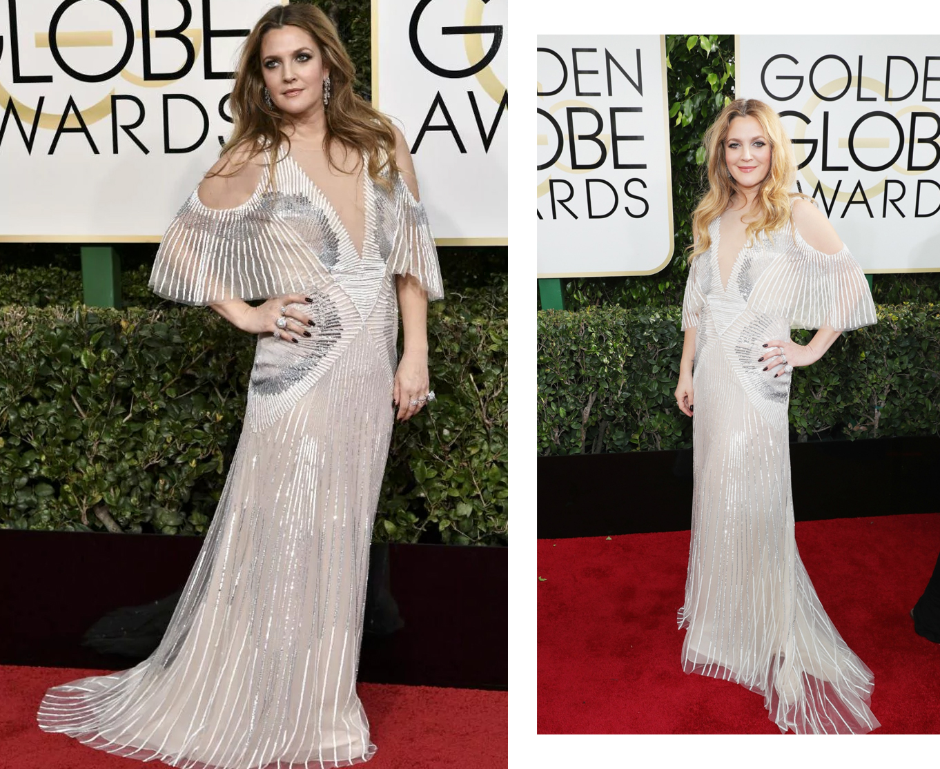 Но на «Золотом глобусе» все ахнули: Бэрримор выглядит просто великолепно. Да и платье она выбрала прекрасное – полупрозрачное, белое и расшитое стразами Monique Lhuillier из весенней коллекции 2017 года.