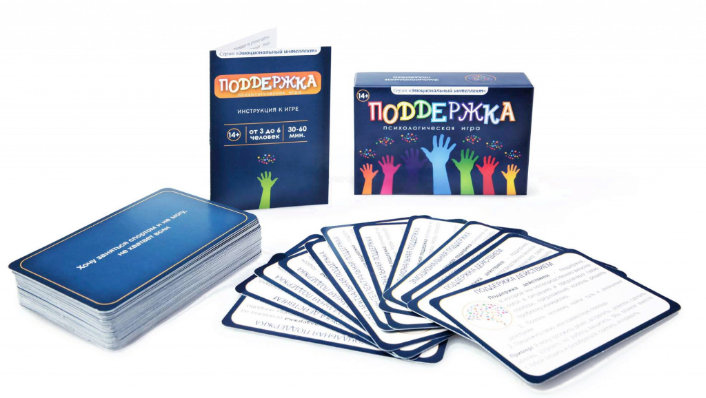 Это психологическая игра, в которой игроки по очереди вытягивают карту ситуации и озвучивают ее от своего лица, а остальные оказывают говорящему поддержку – интеллектуальную, эмоциональную или поддержку действие. А затем тот, кто озвучивал ситуацию, выбирает игрока, от которого получил лучшую поддержку, и начисляет ему балл. Так, после нескольких кругов можно провести анализ, какие формы поддержки удаются каждому игроку, а какие лучше принимаются.