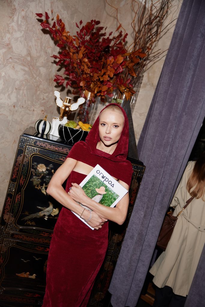 В пятницу, 10 октября, журнал «Огород» отпраздновал свой первый день рождения, который совместили с проводами золотой осени на уютном вечере-огороднике в Regent (здесь, кстати, еще ни разу не было светских мероприятий), собрав самых близких друзей. Приглашенные отметили сезон окончания сборки урожая в самых лучших традициях: столы были украшены сезонными овощами и фруктами, каждый примерил фартуки с резиновыми сапогами, а еще поучаствовал в мастер-классе по посадке растений в горшок (да, Михаил Тройник?). Теме российского сельского хозяйства соответствовали и закуски: классический борщ, маринованные белые грибы, холодец, оливье, бефстроганов и пельмени. В общем, все, как мы любим! Специальным гостем вечера стал Никита Забелин, который не только отыграл диджей-сет, но и представил проект «Техномузыка ветра». Многие Telegram-каналы (и «Хроники PEOPLETALK» в том числе) отметили идеально-подходящий к событию образ Анны Александровой – платье и кейп Kalmanovich из красного бархата. Трудно посчитать, сколько у нее фото с алыми яблоками…